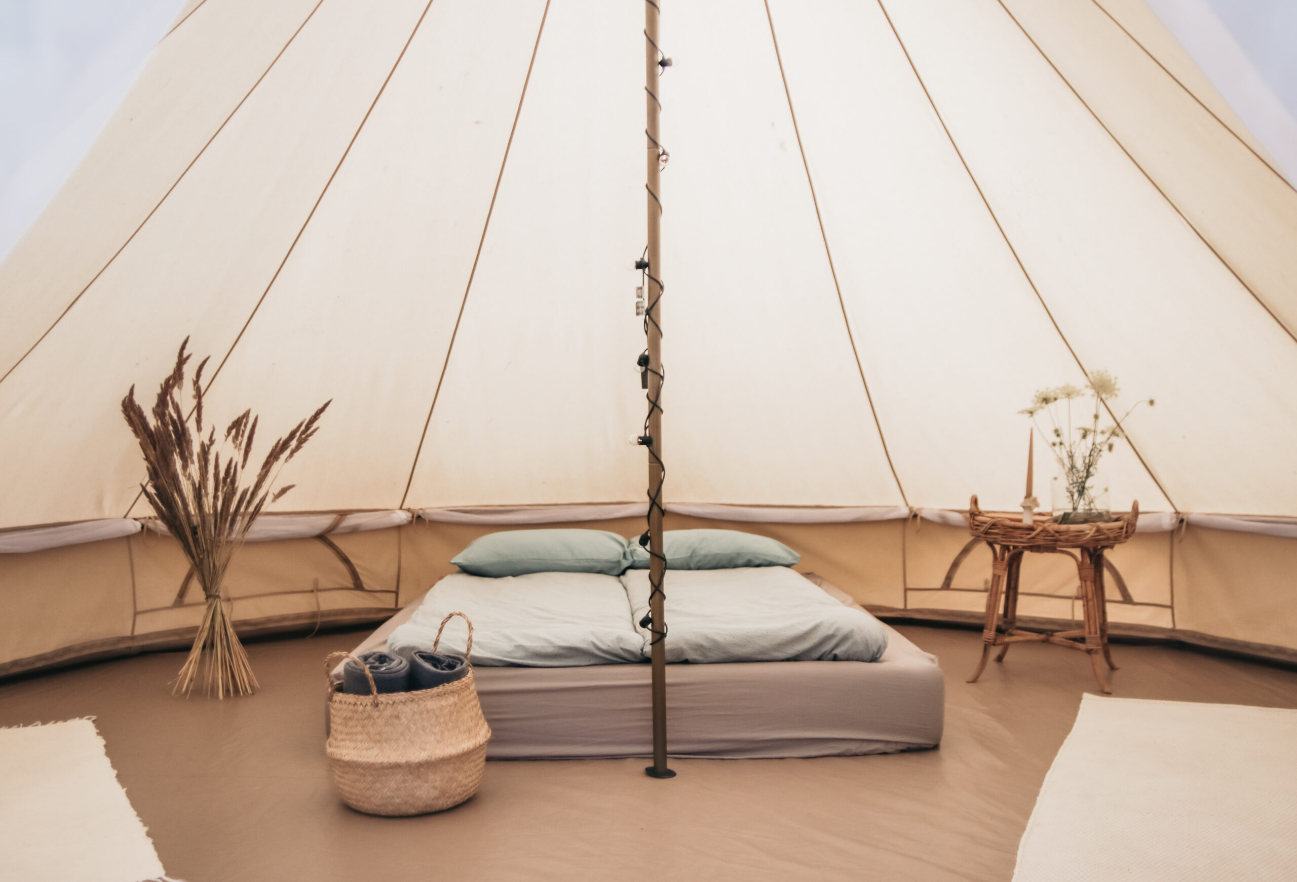Veekindel, hubane ja ruumikas – meie Belgia käsitööna valminud glämpingutelgid toovad luksuse looduse keskele. Telke saab paigaldada pea kõikjale – olgu see koduõu, heinamaa või mereäär. Iga telk mahutab mugavalt 1-4 inimest ning saab sisustada voodiraamidega, pehmete madratsite ja kvaliteetsete voodiriietega. Voodid saab paigutada kas eraldi (single) või kokku kaheinimesevoodiks (double).