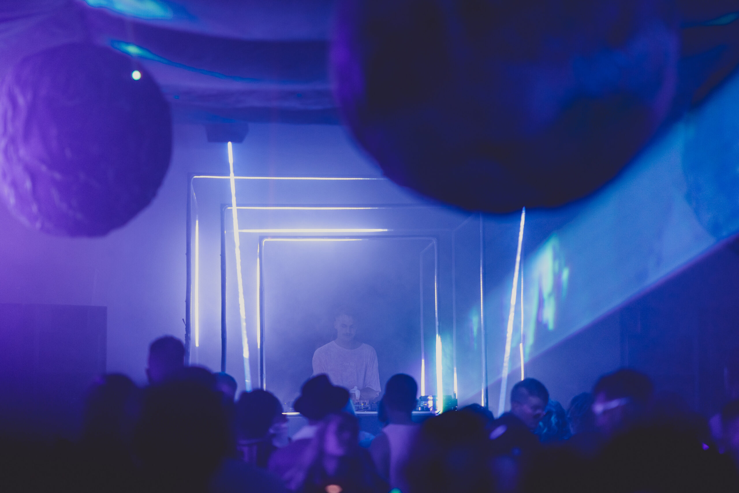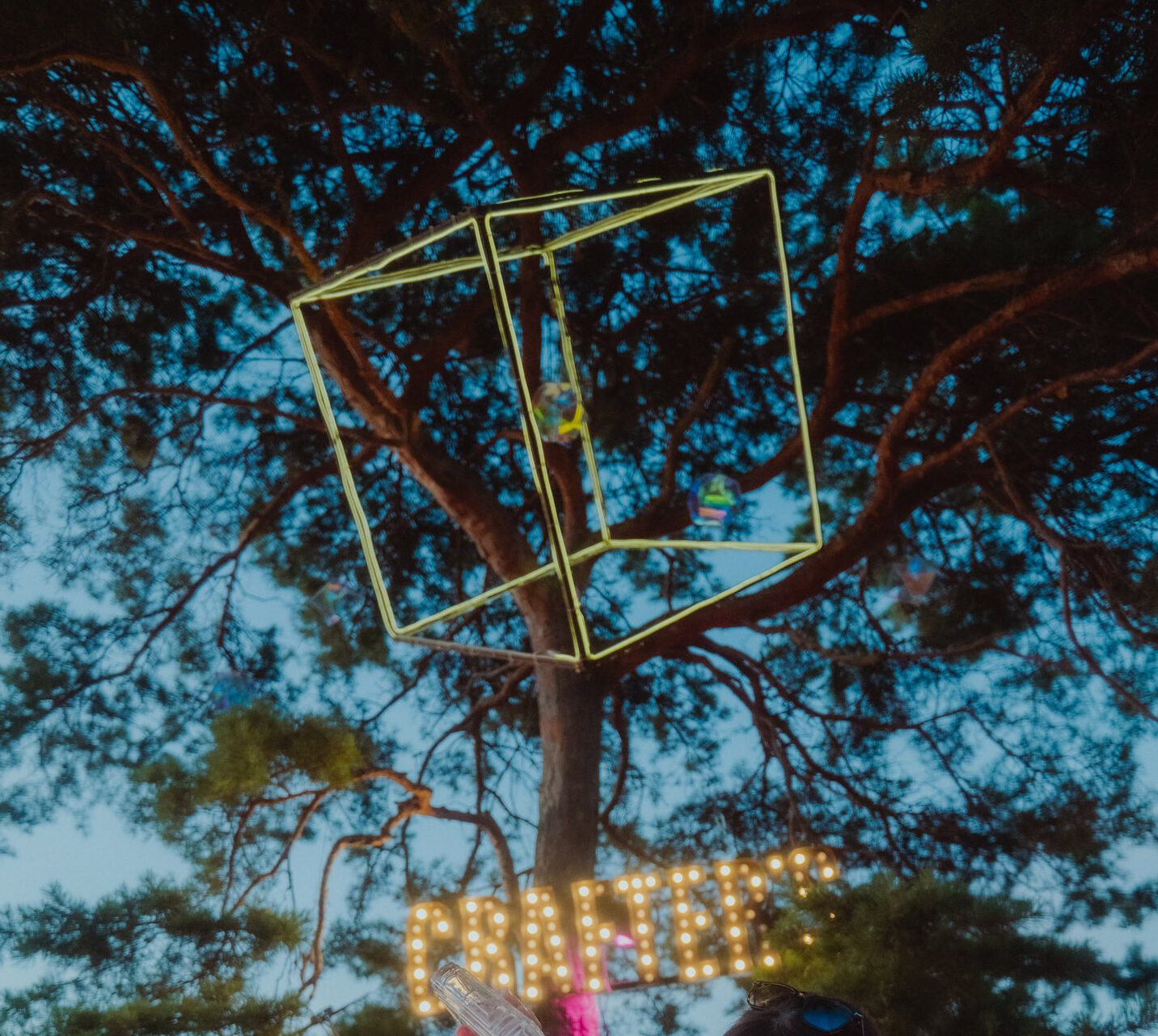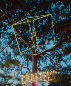 Metallkonstruktsioonil programmeeritava led valgusega ruumiline kuup. Sobib ideaalselt ala, DJ või toote valgustamiseks.